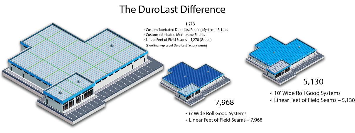 When you install a custom-fabricated Duro-Last Roofing System, up to 85% of the seams are completed in a factory-controlled environment before the roofing system is delivered to the job site. By eliminating most of the on-site seaming, Duro-Last dramatically reduces the potential for leaks and adds the advantages of a faster, quieter and easier installation, with less maintenance and reliable roof performance for years to come. Contact Duro-Last to learn more about custom-fabricated roofing systems, and view our training videos to learn more about the installation process.